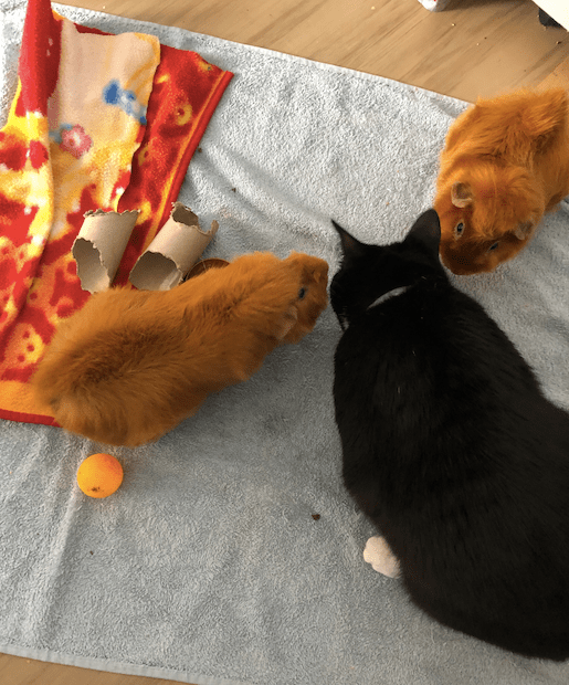 Now, Timmy and Bucky Barnes are back in the lounge with Big Bird – which made her happy because she really likes the boys. She thinks she can talk guinea pig. 🙂 And the little buggers are also in the lounge but on a table that is easier to move and has nothing under it, fingers crossed it’ll be easier to clean.