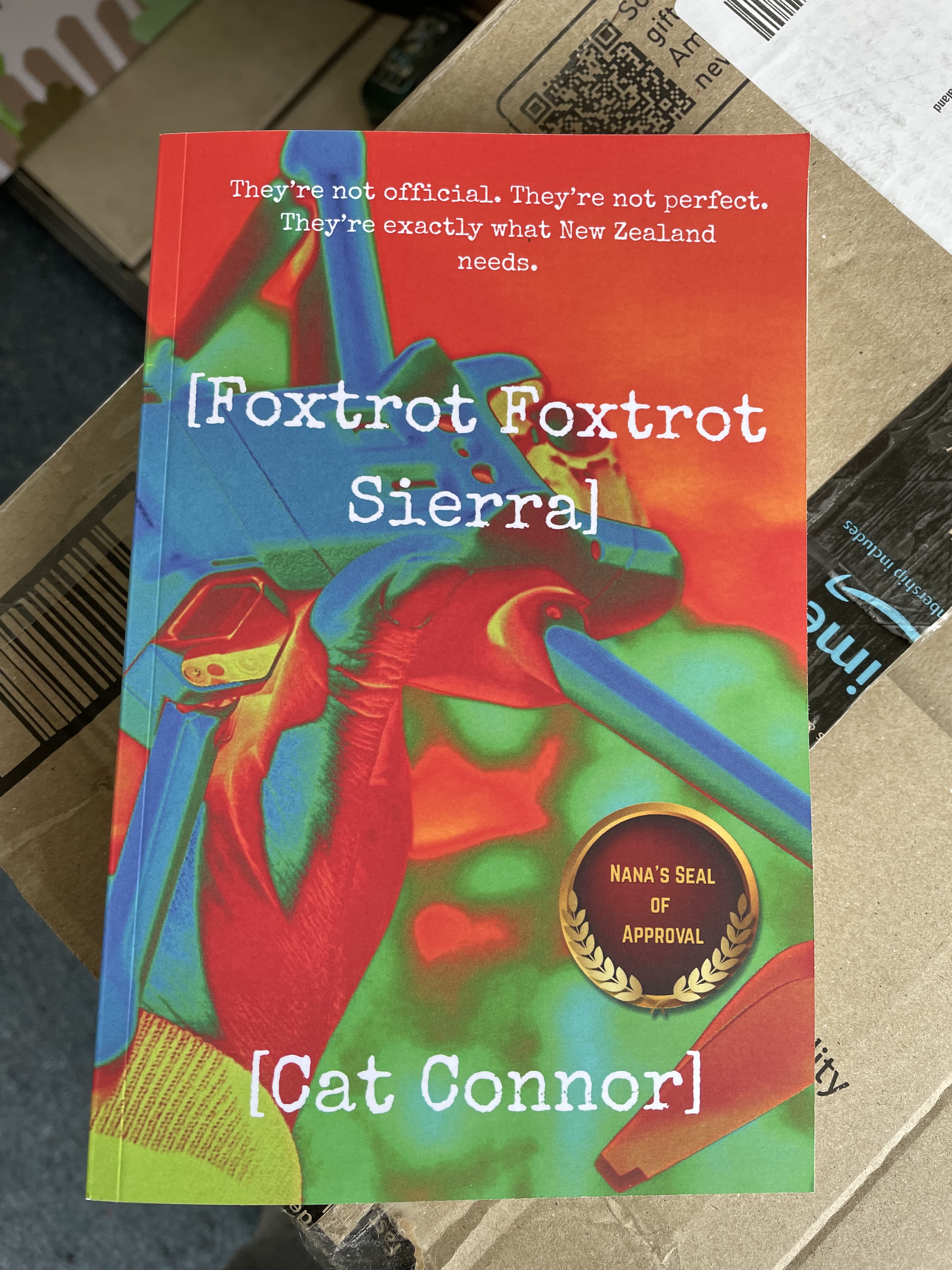 I went off to work at 8:30 this morning (extra shift), knowing that my author copies of [Foxtrot Foxtrot Sierra] were going to arrive at some stage today. Doris was home, no worries there.